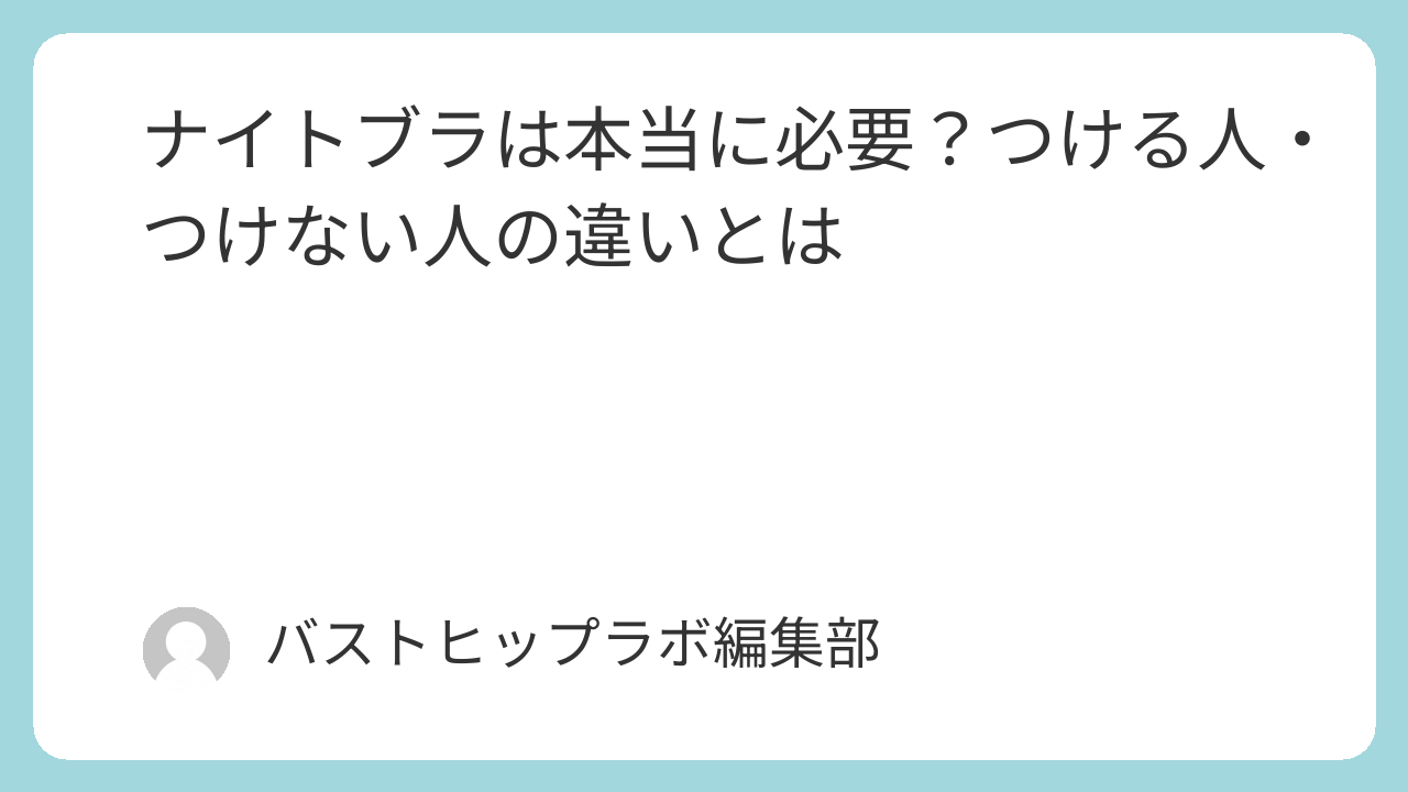 動きが気になる場合は、ナイトブラを試す価値があります。逆に気にならない場合は、無理に取り入れる必要はありません。自分の状態を基準に判断することが大切です。