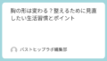 また、長時間同じ姿勢で過ごす習慣も見直してみましょう。パソコン作業やスマートフォンの使用が長い場合、肩や背中が丸まりやすくなります。