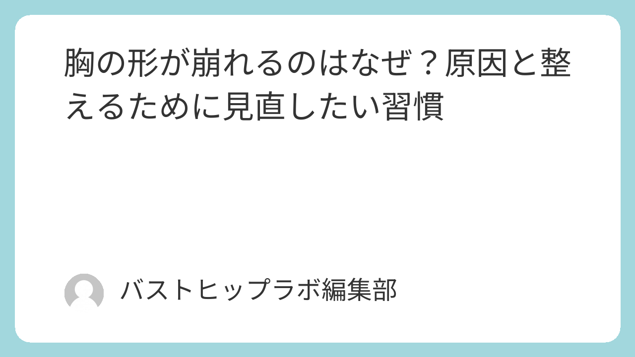 特別なことをしていなくても、日常の姿勢や体の使い方によってバストのラインが変わって見えることは珍しくありません。形が崩れてきたと感じるときは、まず普段の生活を振り返ってみることが大切です。