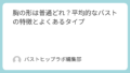 バストの形には平均的と言われる特徴もあります。自分の形がどのタイプに近いのか気になる方は、次の記事も参考にしてみてください。
