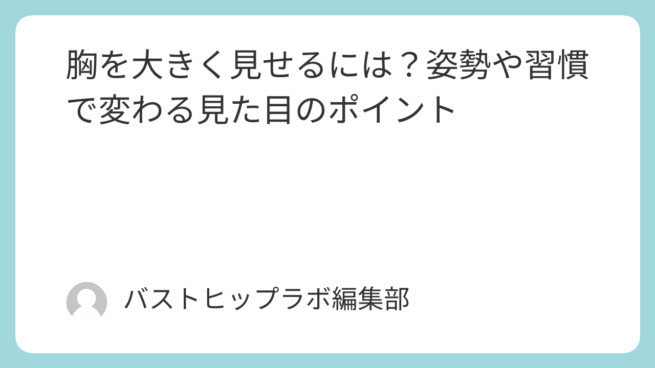 体の使い方や生活習慣、運動、服の選び方など、さまざまな要素が重なって胸の印象が作られていきます。そのため、少しした工夫でも見え方が変わることがあります。