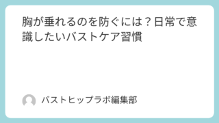 バストケア・習慣 胸が垂れるのを防ぐには?日常で意識したいバストケア習慣 胸が垂れる原因は年齢だけではないと言われています。姿勢や生活習慣、体型の変化なども関係する可能性があります。この記事では胸が垂れる状態の基本と、日常で意識したいバストケア習慣をやさしく解説します。 2026.03.04 バストケア・習慣