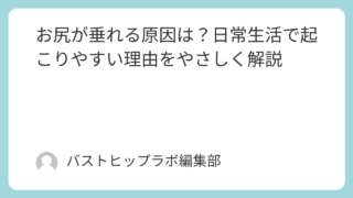 ヒップ お尻が垂れる原因は?日常生活で起こりやすい理由をやさしく解説 お尻が垂れる原因は?と気になる方に向けて、日常生活で起こりやすい理由をやさしく解説。座りっぱなしの生活や筋肉の衰え、姿勢や下着など、ヒップラインに影響すると言われるポイントを紹介します。 2026.03.06 ヒップ